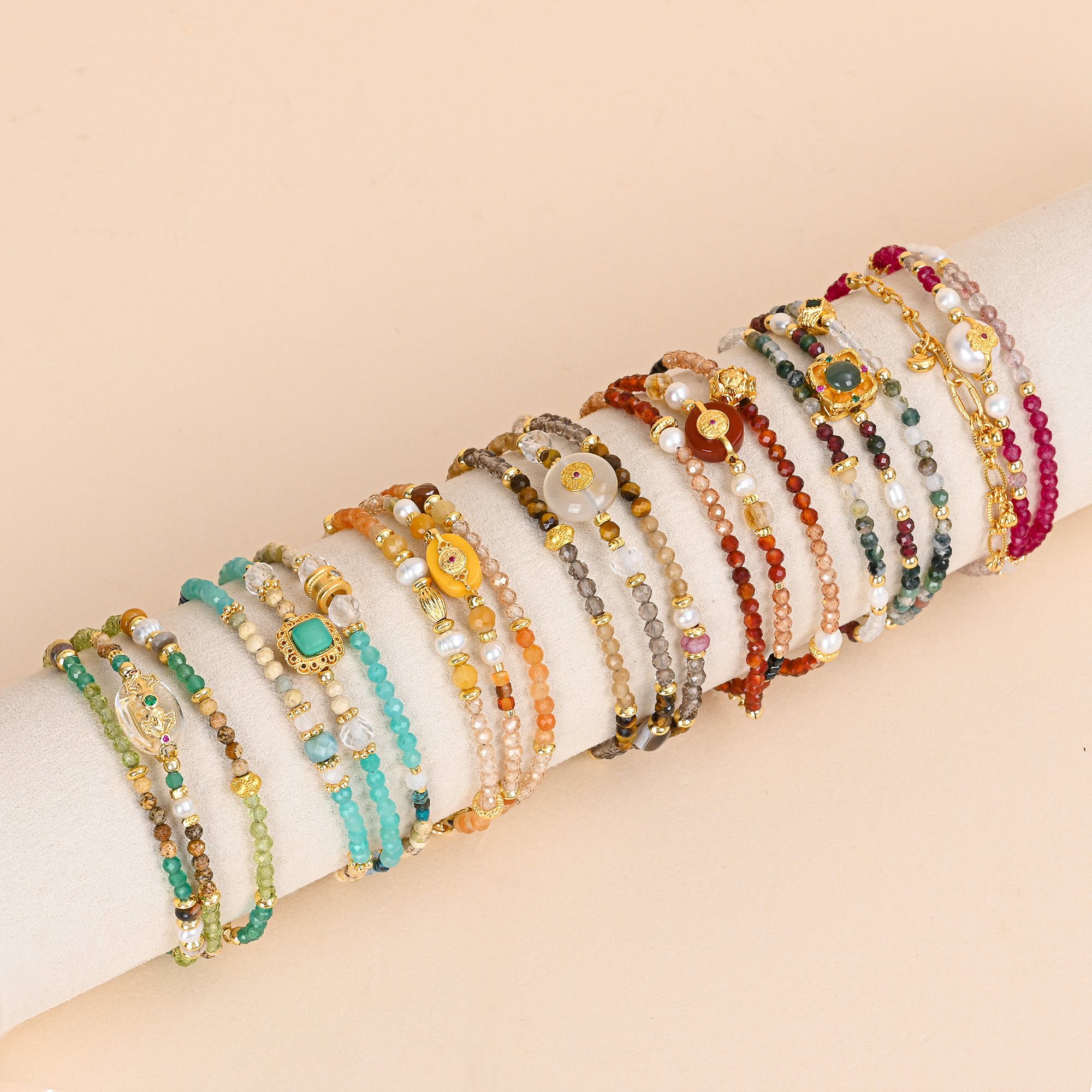 选择这款国风手串,是为天然材质的独特质感与东方美学的碰撞倾心。非洲翠清润、帝王石华贵、绿松石澄澈、红木纹温润、古铜辉深邃,每颗原石都带着自然生长的纹理,搭配莹润的淡水珍珠,层次丰富又和谐。纯手工原创的设计,让每一串都独一无二,细节里藏着匠人巧思。佩戴它,既能点缀日常穿搭,又能彰显东方雅致的审美品位,无论是自留还是赠友,都是承载心意的质感之选