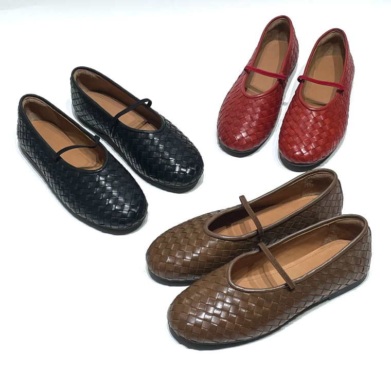 进口水洗马皮纯手编织面小单鞋