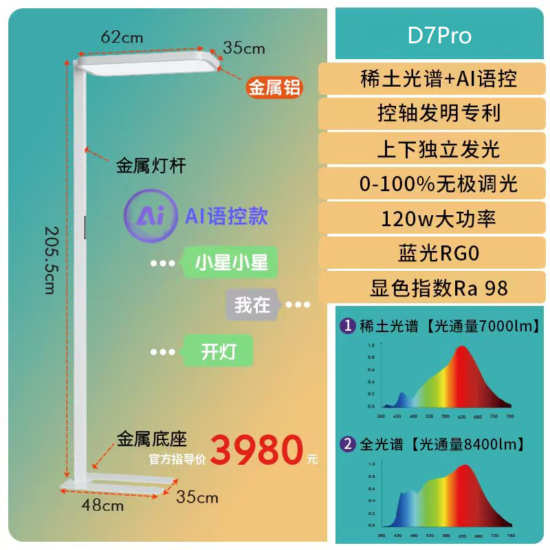 D2Pro 控眼轴灯,搭载中科院士团队 10 年研发控轴光谱,可抑制眼轴增长,一年眼轴少涨 0.2mm。蓝光值仅 0.3,远低于国标,控轴模式能一键消除电子产品有害蓝光。80 厘米加长灯头,180° 旋转搭配遮光条,抬眼不刺眼;人体感应自动开关,使用便捷。稀土灯珠耐用抗衰,18 年光衰仅 2%。顺丰包邮、3 年质保