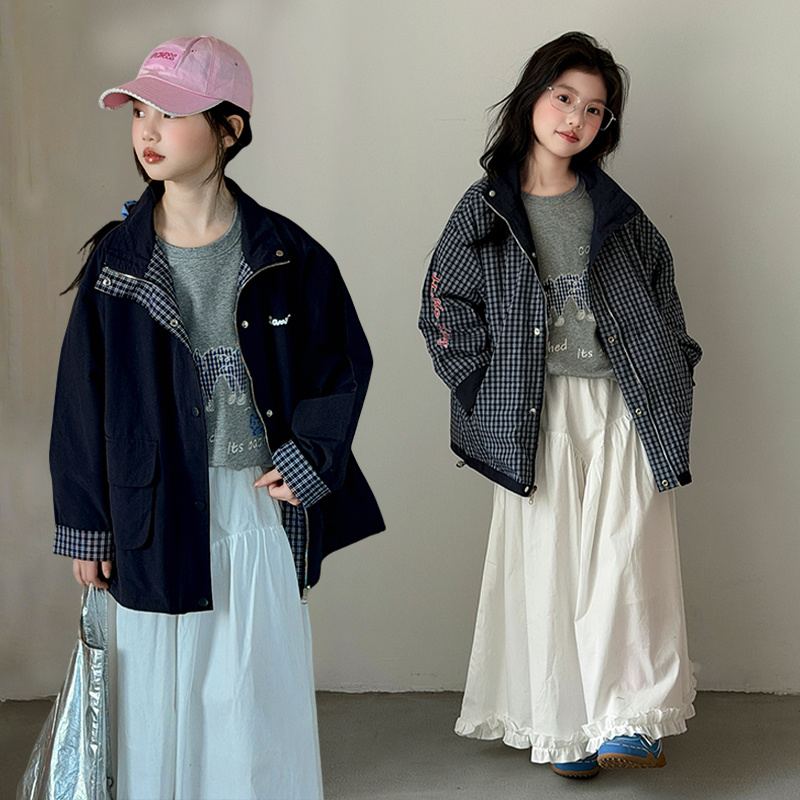 6002双面穿格子外套+6026木耳边半身裙