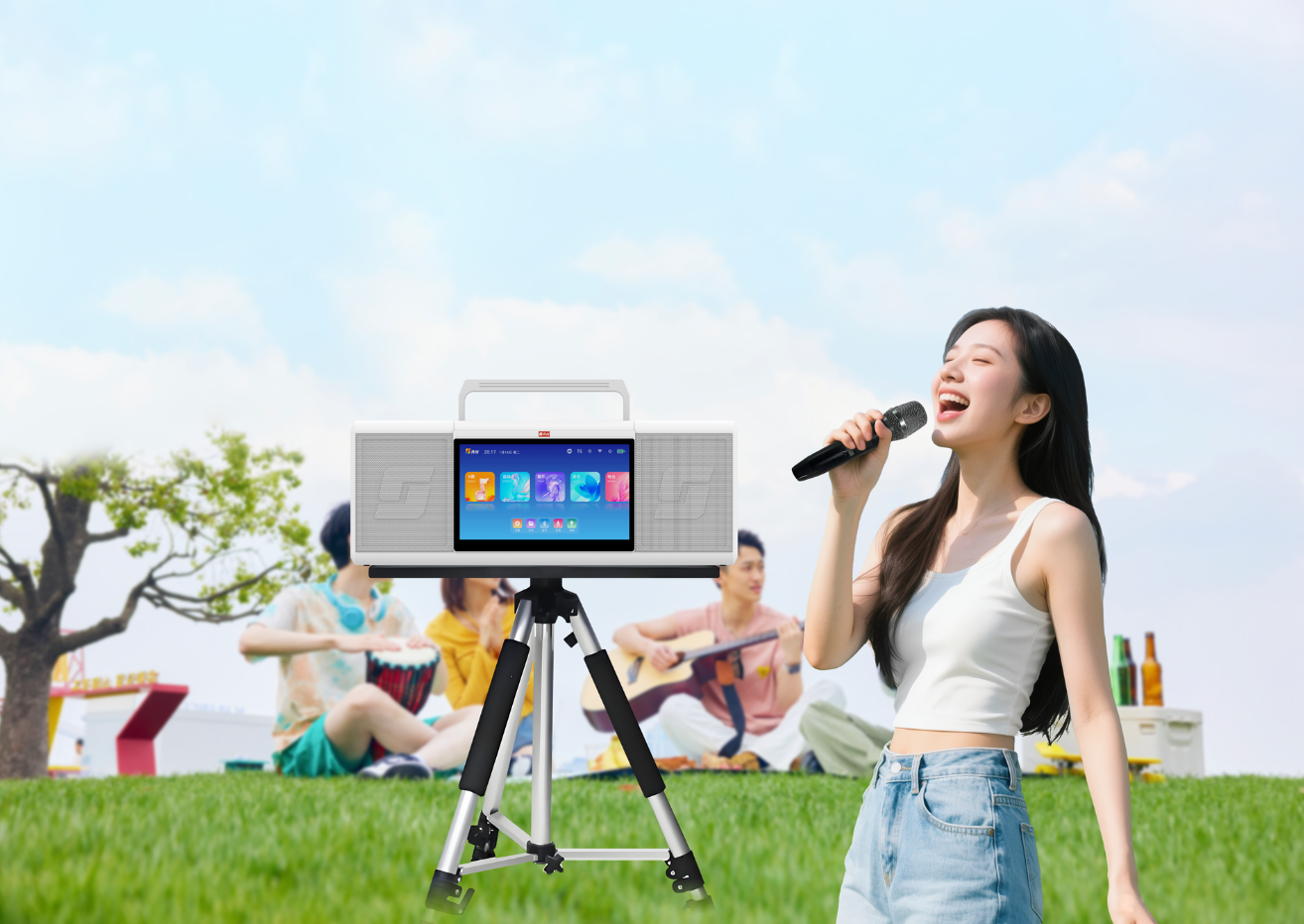 音创悦行M210Pro智能便携式点唱机,是您户外的随身KTV。它以轻量化机身融合强劲内核,集K歌、运动、音乐于一体,兼具高颜值与卓越音质。不仅续航持久、易于携带,更以多元娱乐功能,全面满足您对性能与美学的追求。